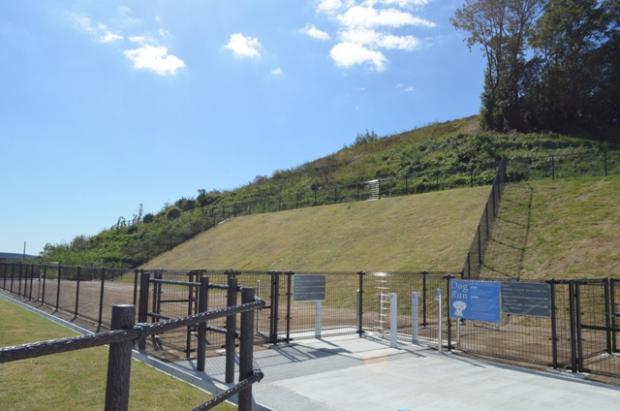 広さ570平方メートル(中・大型犬用470平方メートル、小型犬用100平方メートル)で、犬専用の水飲み場を2カ所に設置。